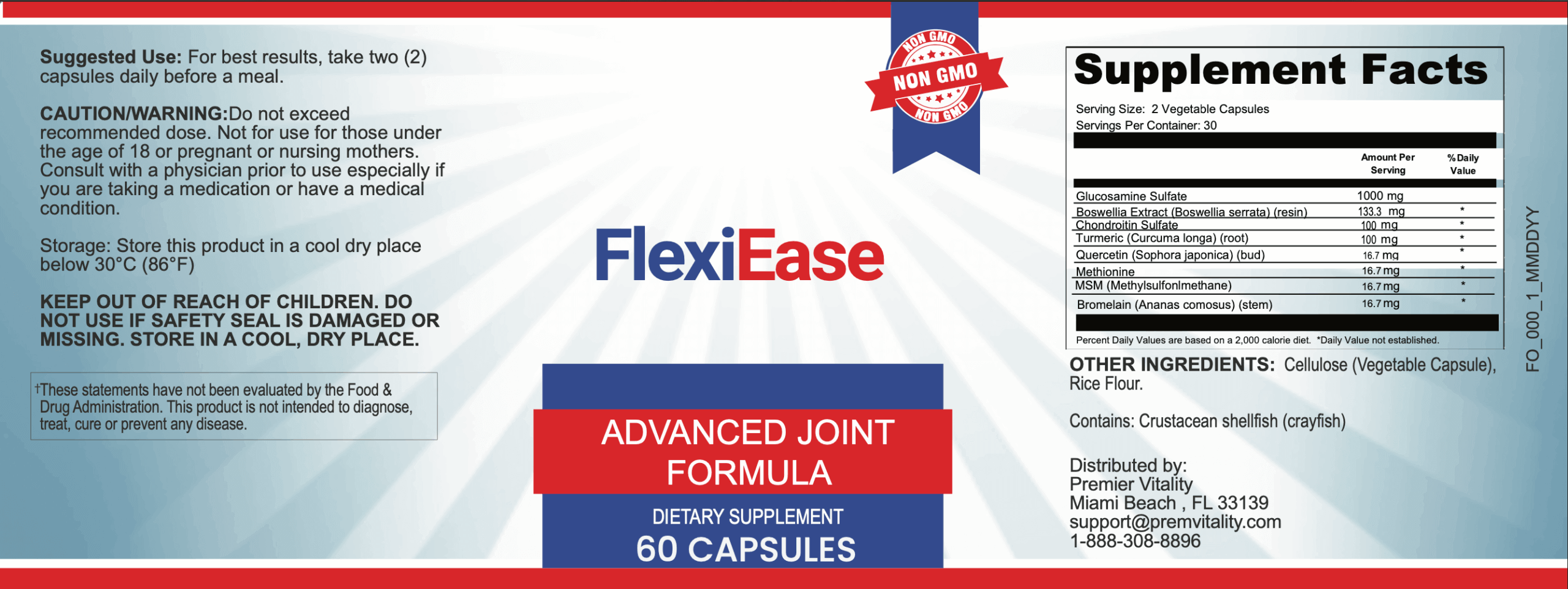 Introducing FlexiEase, a revolutionary product designed to support healthy joints. With its unique blend of natural ingredients, FlexiEase provides essential nutrients that promote flexibility and ease discomfort in your joints. Whether you’re an active athlete or someone looking to maintain joint health, FlexiEase’s advanced formula works to nourish your joints, helping you move with comfort and ease. Say goodbye to stiffness and hello to improved mobility with FlexiEase – your key to a more flexible and enjoyable lifestyle!